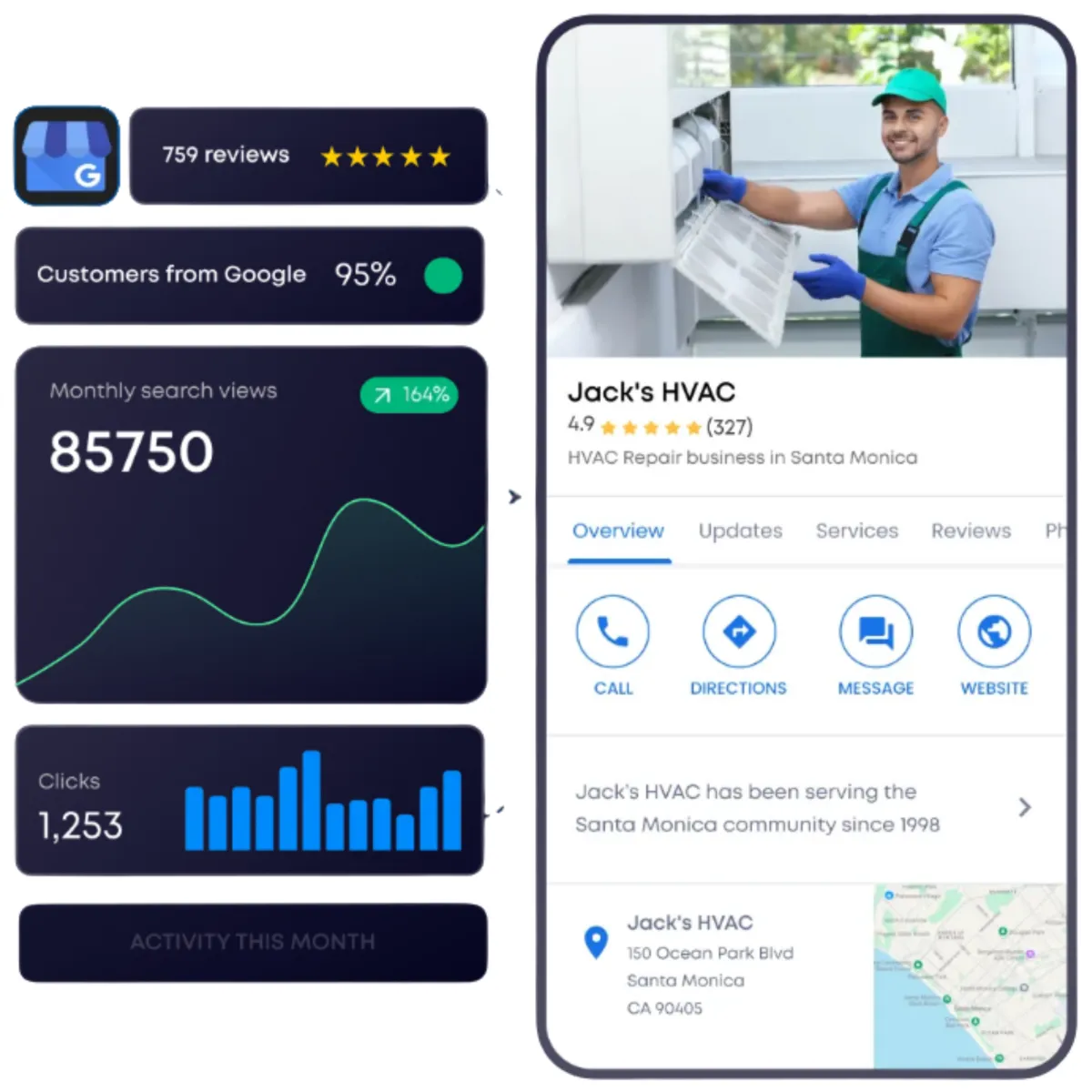 Power Ranker automates the most time-consuming parts of local SEO and Google Business Profile management, including publishing keyword-rich posts, uploading optimized images and videos, helping with review replies, and managing citations and reputation through integrated tools. She also tracks ranking data and improvements so you can clearly see how your visibility on Google Maps and local search is improving over time.